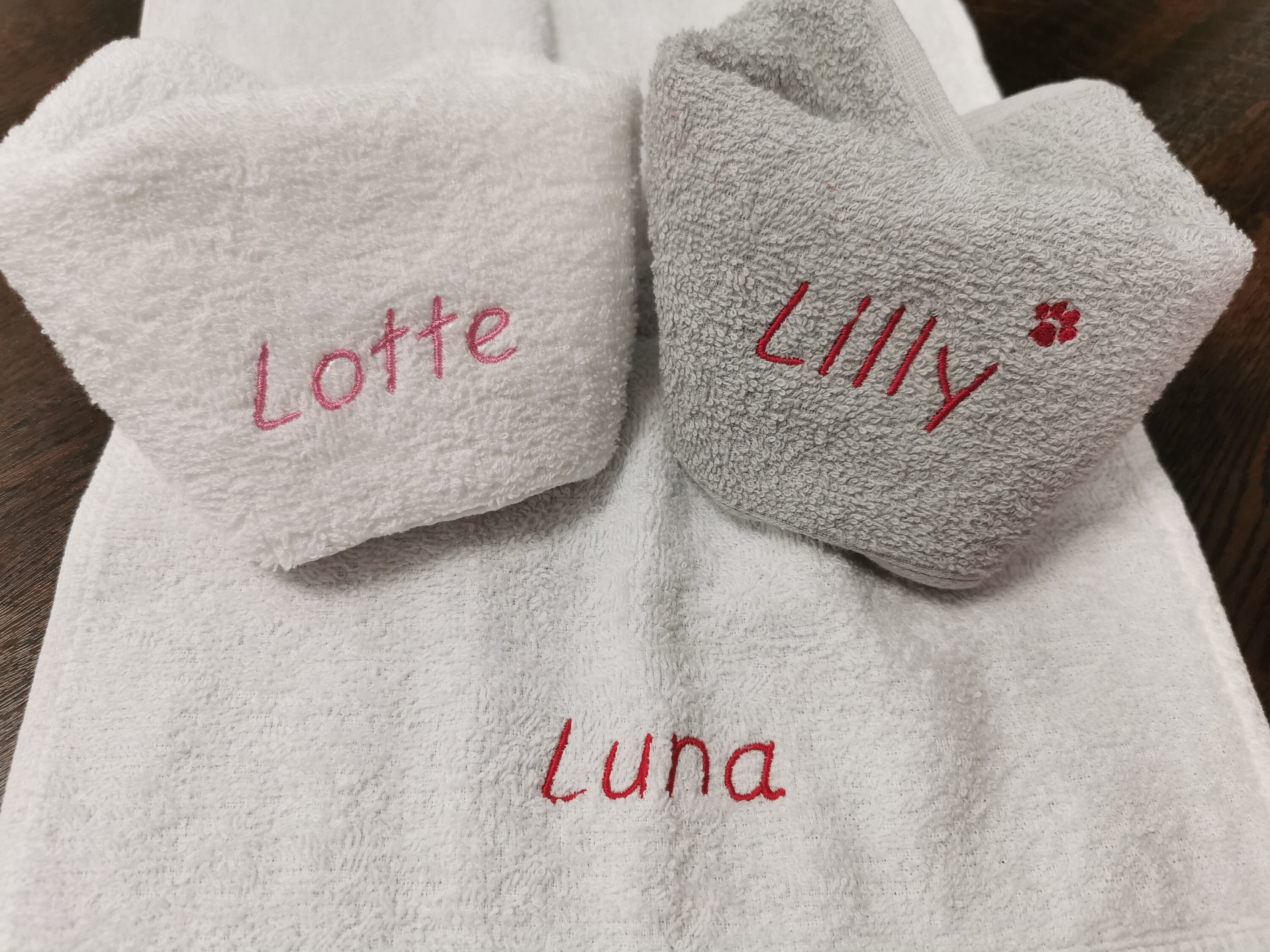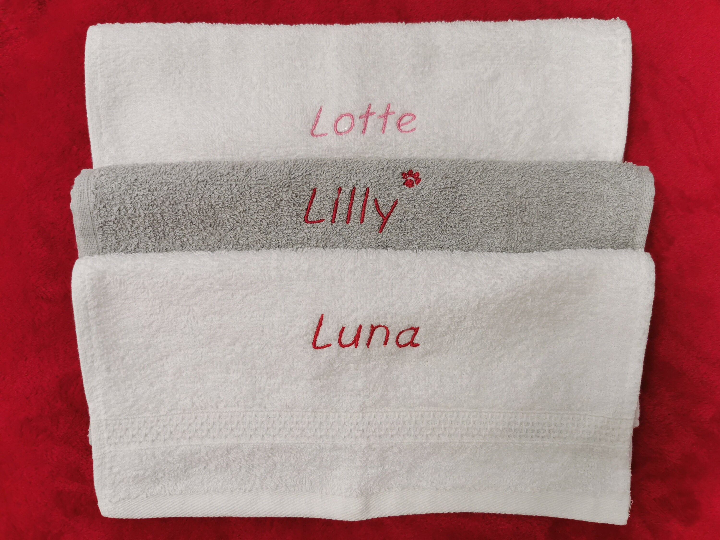 🐶 I will embroider a fluffy towel in the size 50 x 100 cm according to your wishes.