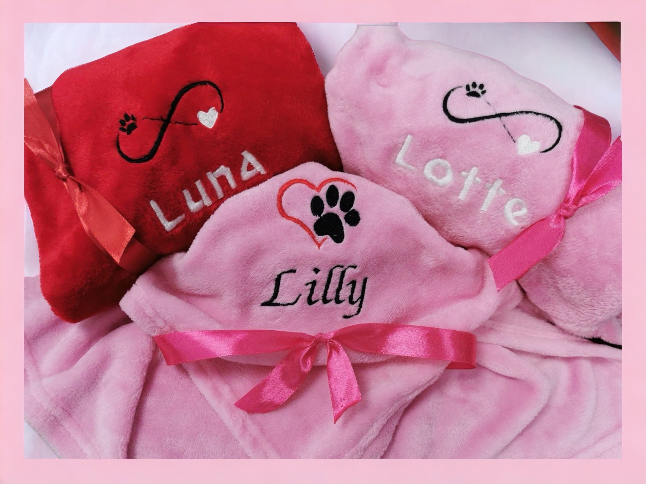 Is a new puppy moving in? Or are you looking for a special gift for your favorite furry friend? Our embroidered dog blanket is the perfect choice—cuddly soft, individually personalized, and ideal as a puppy gift, dog toy addition, or simply as a comfortable blanket for your dog's basket or car.