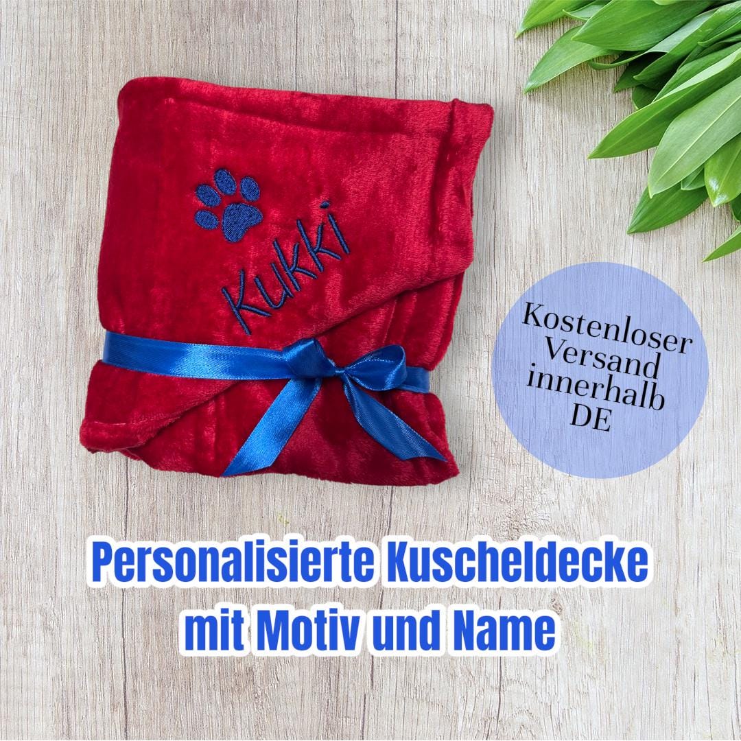 Personalized Dog Blanket with Name – Embroidered Cuddly Blanket for Dogs & Cats – Puppy Gift – Pet Blanket in 13 Colors/ 2 Sizes