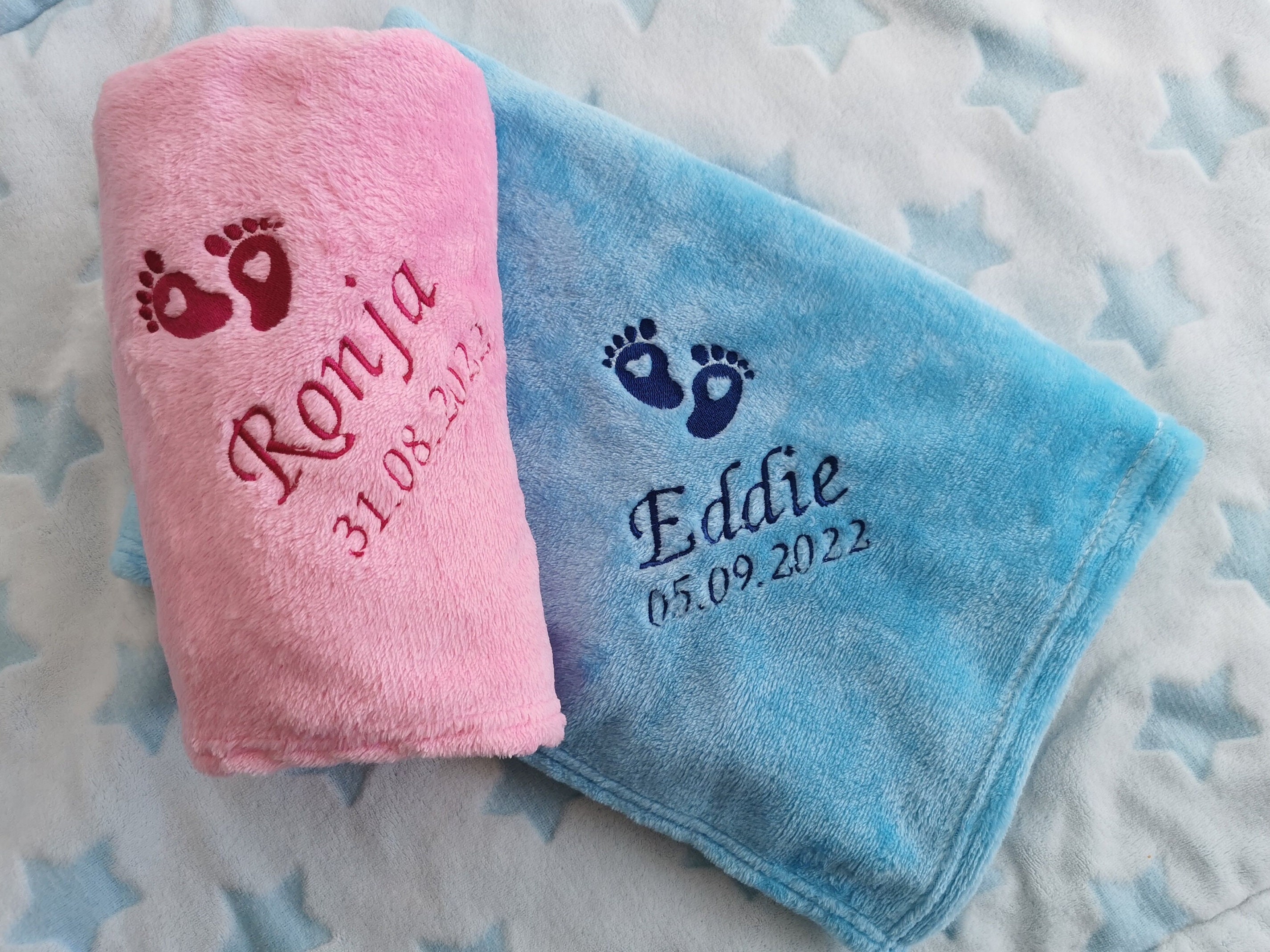 🍁❤️ Embroidered with cute baby feet and individually personalized with name and date of birth, this blanket is the perfect gift for cuddle fans big and small.