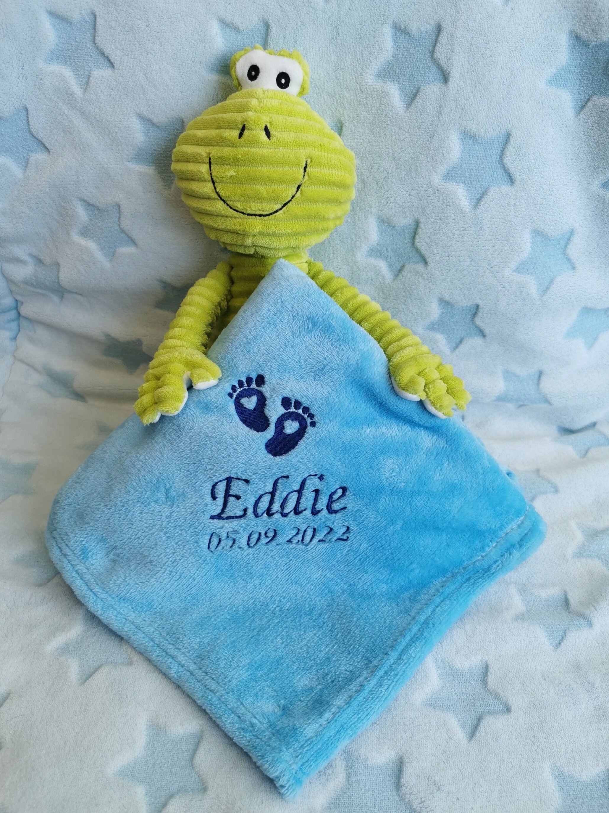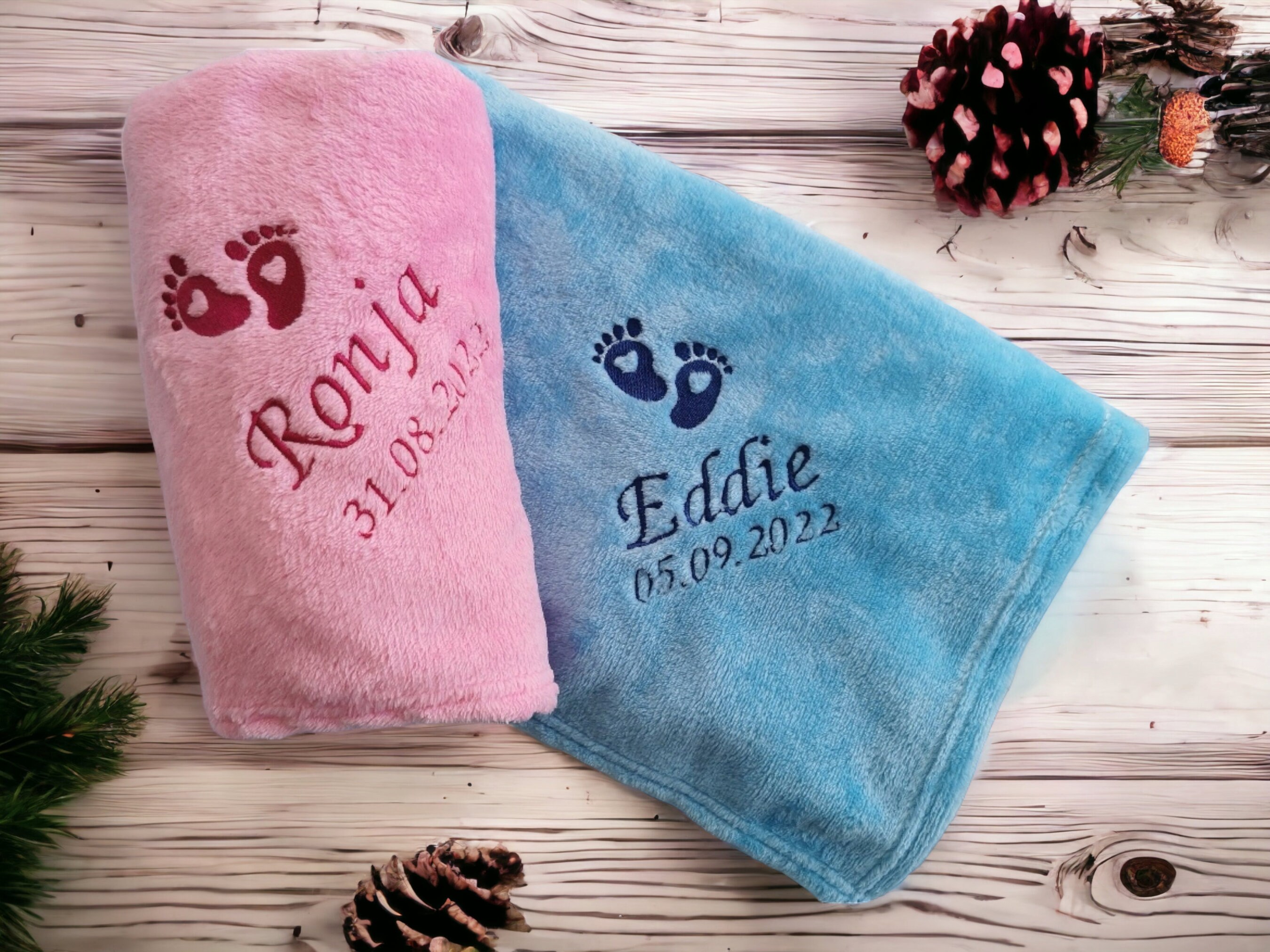 🍁❤️ Embroidered with cute baby feet and individually personalized with name and date of birth, this blanket is the perfect gift for cuddle fans big and small.