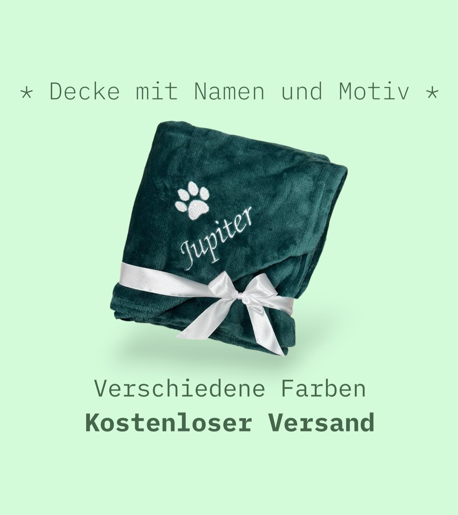 Is a new puppy moving in? Or are you looking for a special gift for your favorite furry friend? Our embroidered dog blanket is the perfect choice—cuddly soft, individually personalized, and ideal as a puppy gift, dog toy addition, or simply as a comfortable blanket for your dog's basket or car.