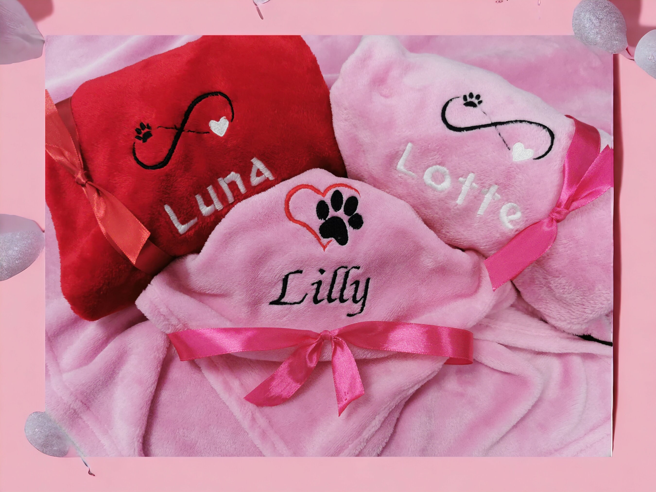 Is a new puppy moving in? Or are you looking for a special gift for your favorite furry friend? Our embroidered dog blanket is the perfect choice—cuddly soft, individually personalized, and ideal as a puppy gift, dog toy addition, or simply as a comfortable blanket for your dog's basket or car.