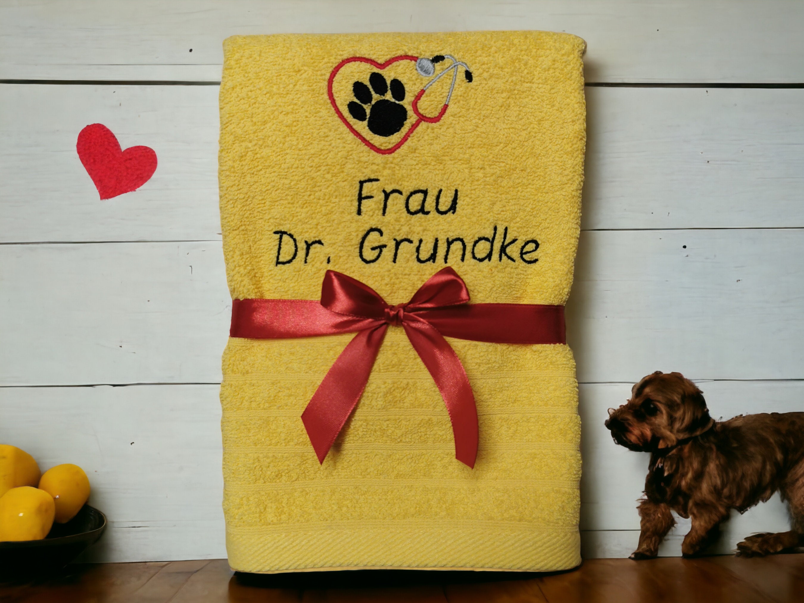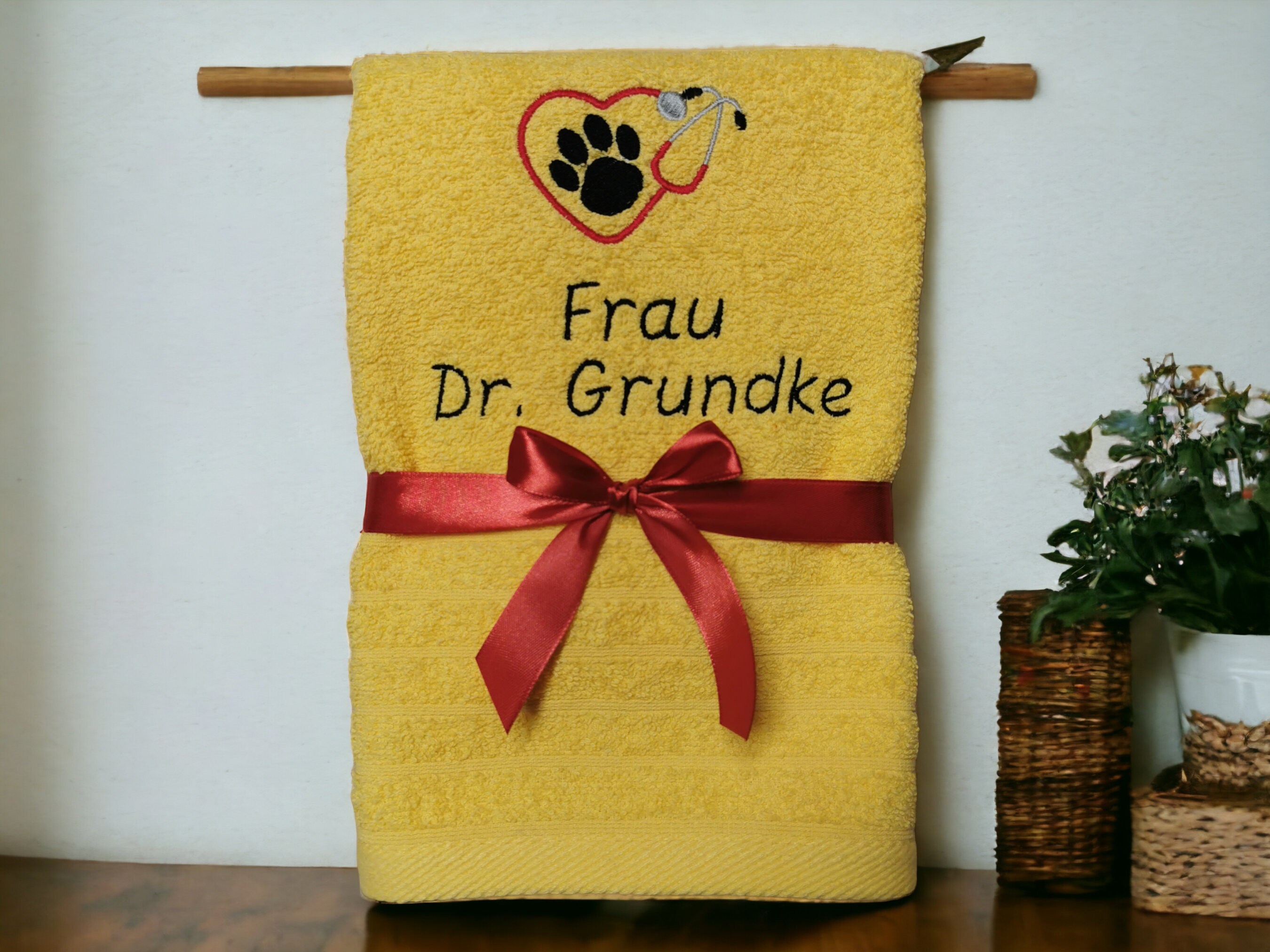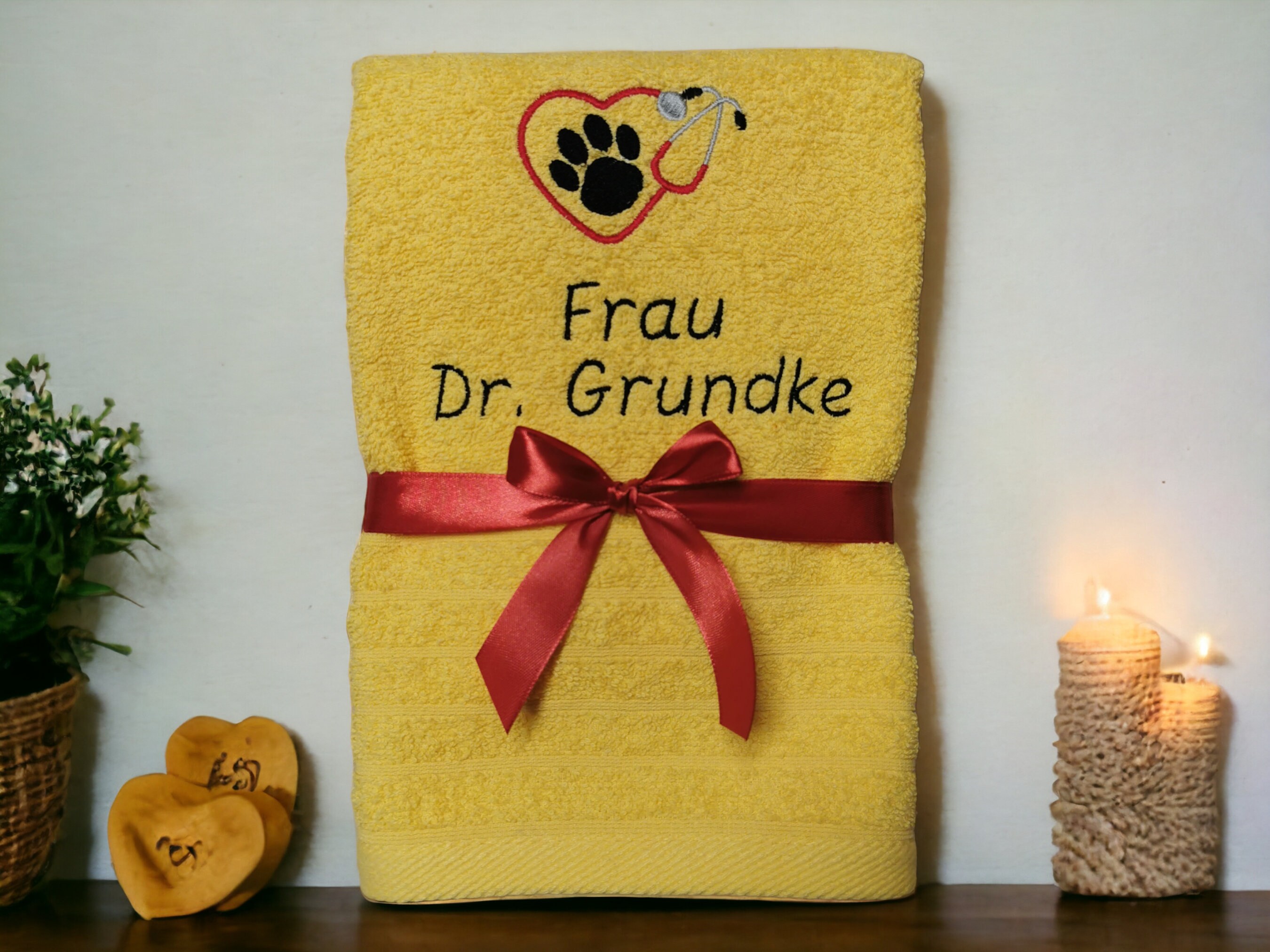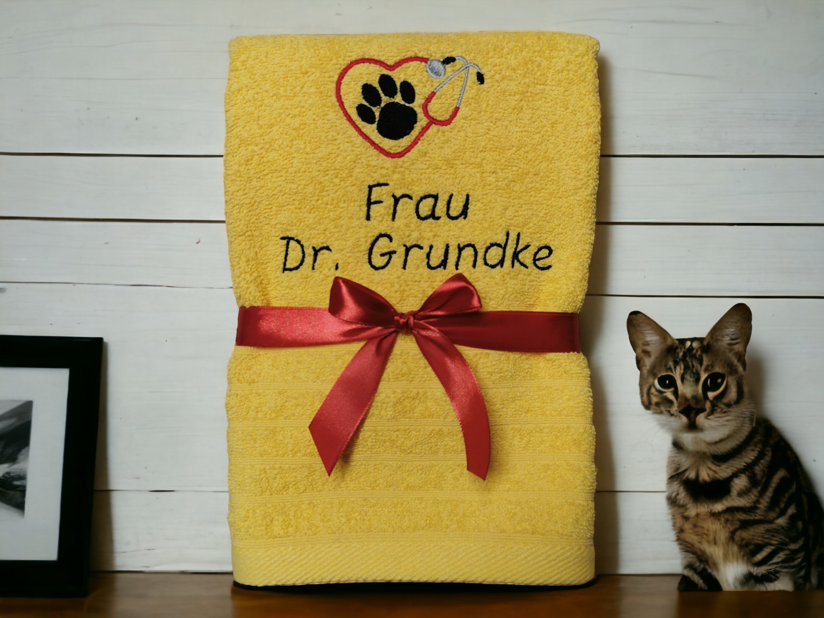 💕This high-quality towel is embroidered with a cute paw in a heart-shaped stethoscope and the name or desired text of your veterinarian. This makes it a very personal gift that is guaranteed to bring joy.