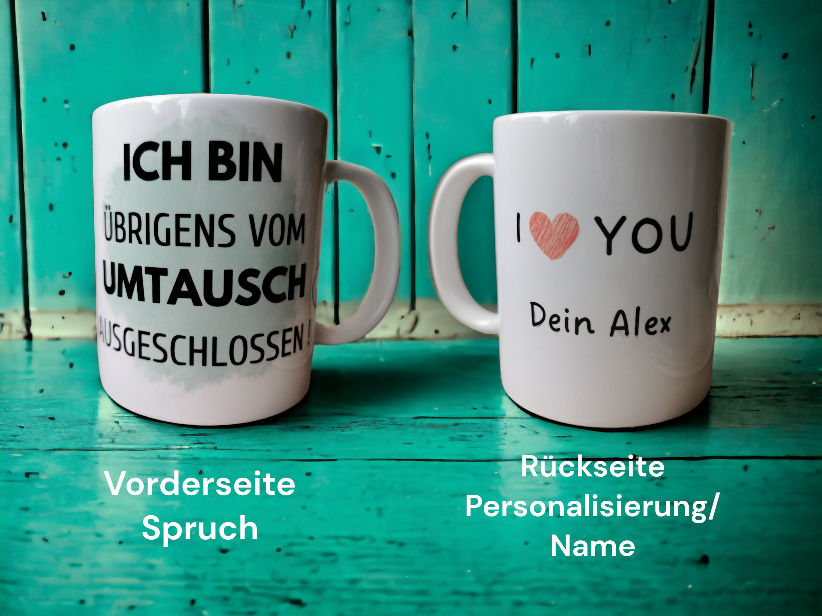 Surprise your loved one with a personalized mug full of joy and love! The mug is designed with a cheeky saying, a smiley motif and the name of your choice. Show your love and appreciation in an original way with this unique gift. Order your personalized mug now and let the love bubble!