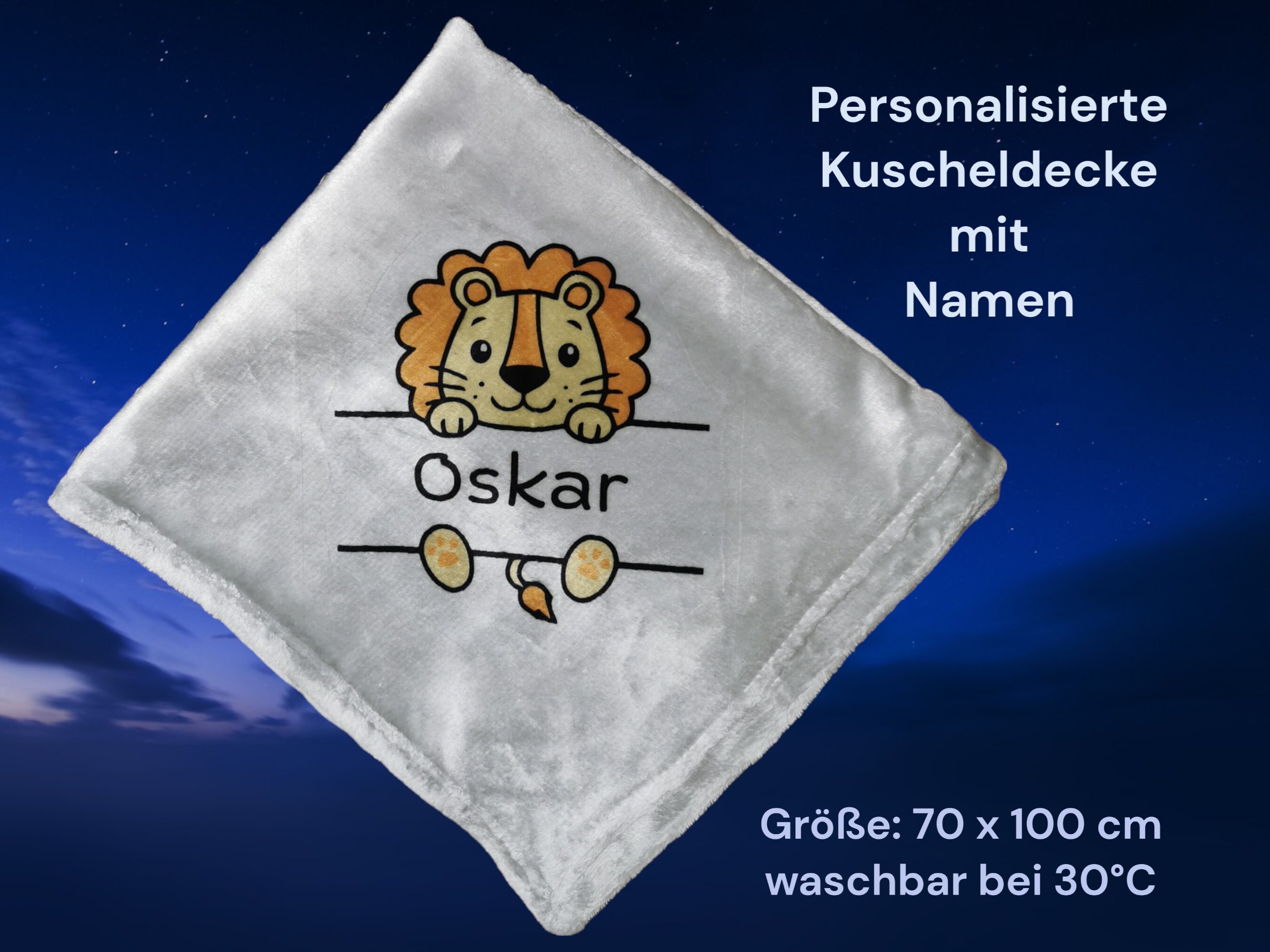 Would you like to give a child a very special gift? Then our personalized blanket is just the thing for you! The blanket is not only soft and cozy, but is also decorated with your child's name and cute animal motifs.
