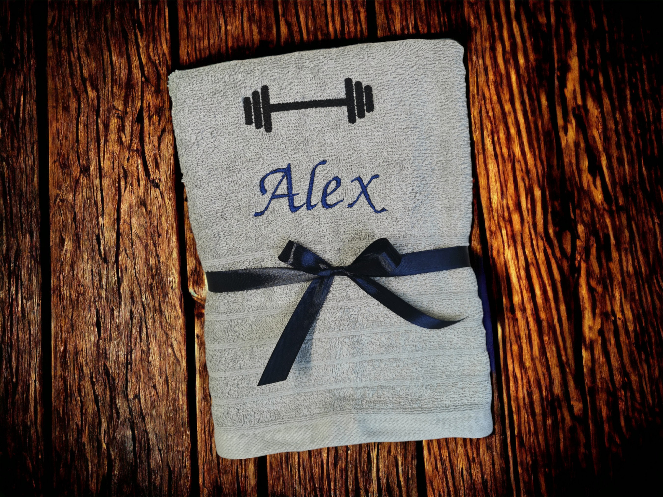 Personalized towel with name, embroidered, for sports, fitness, gym, men & women, 100% cotton