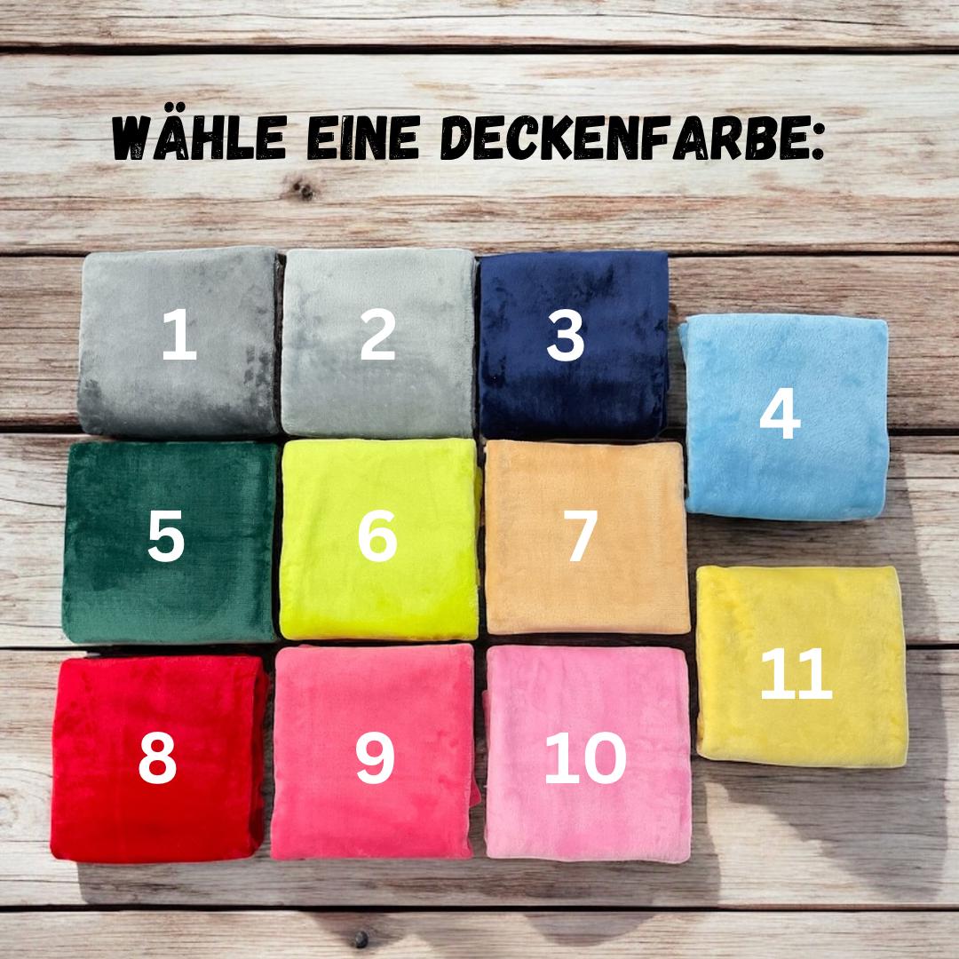 I will embroider a super soft blanket according to your wishes in the sizes 70 x 100 cm and 130 x 150 cm. (130 x 150 cm only in colors no. 2, 4, 7, and 10)