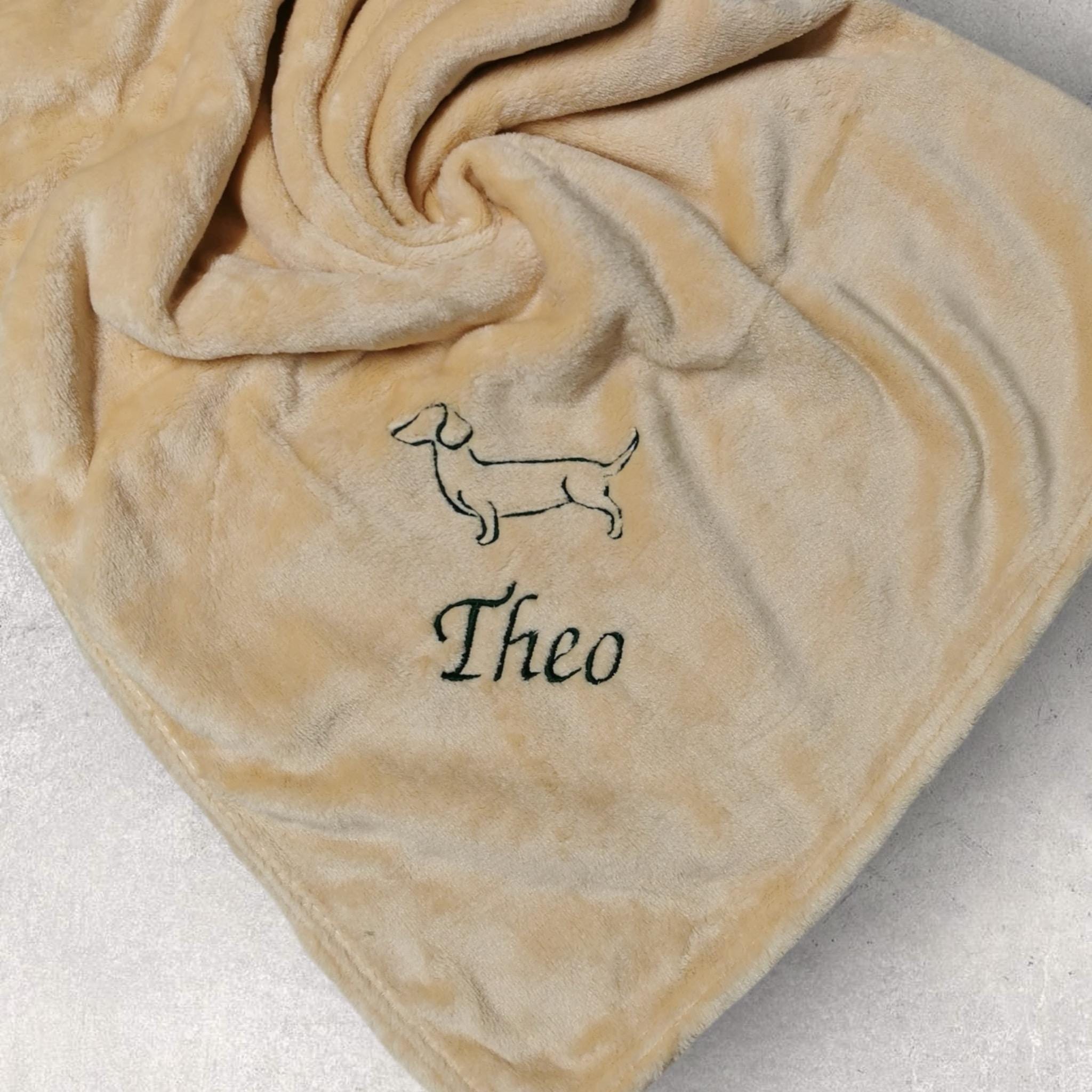 Our blanket, lovingly embroidered with a sweet dachshund motif and your four-legged friend's name, will make every cuddle moment special.