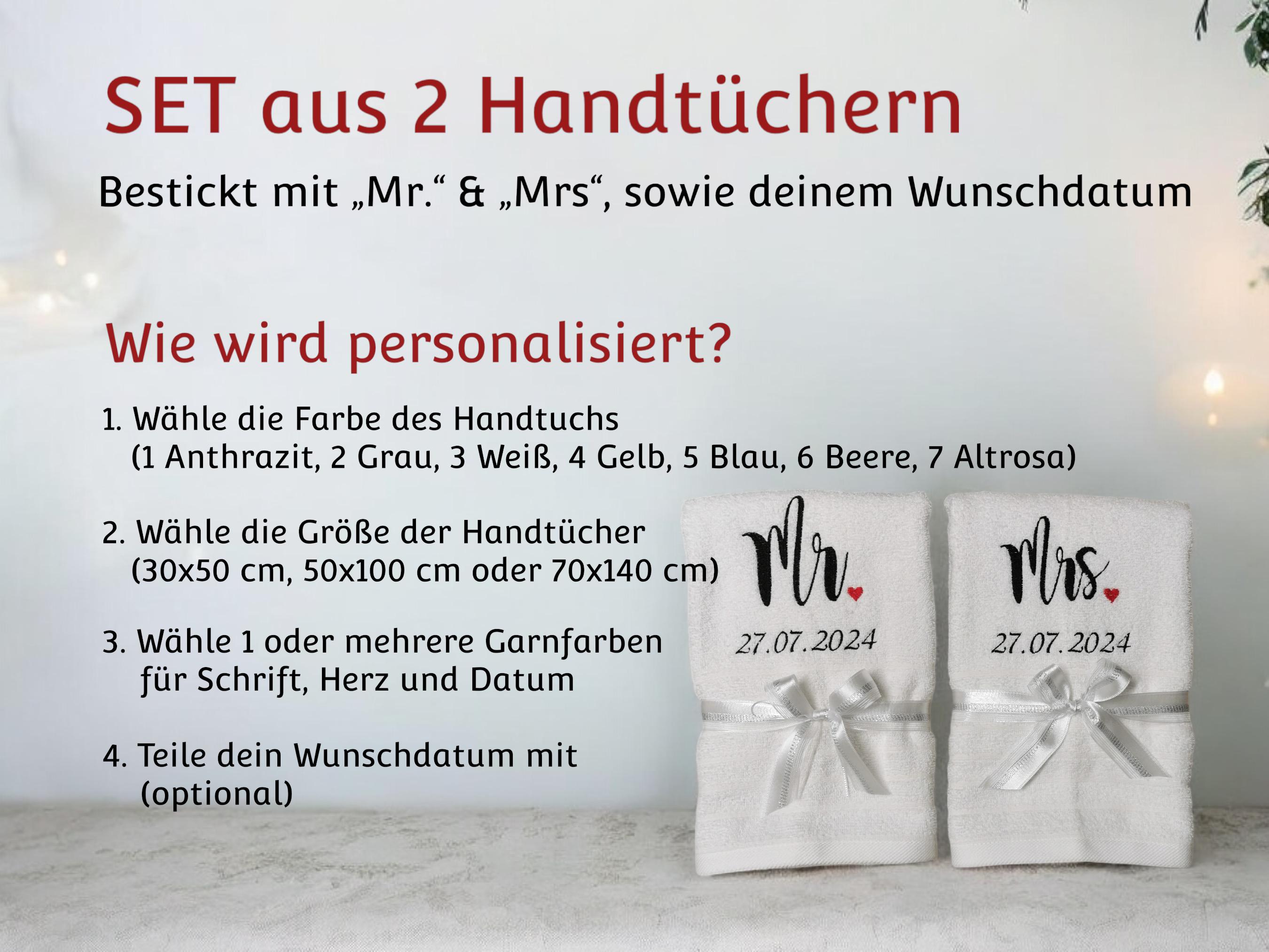 ♥ Personalized towel set "Mr. & Mrs." - Perfect for that special day