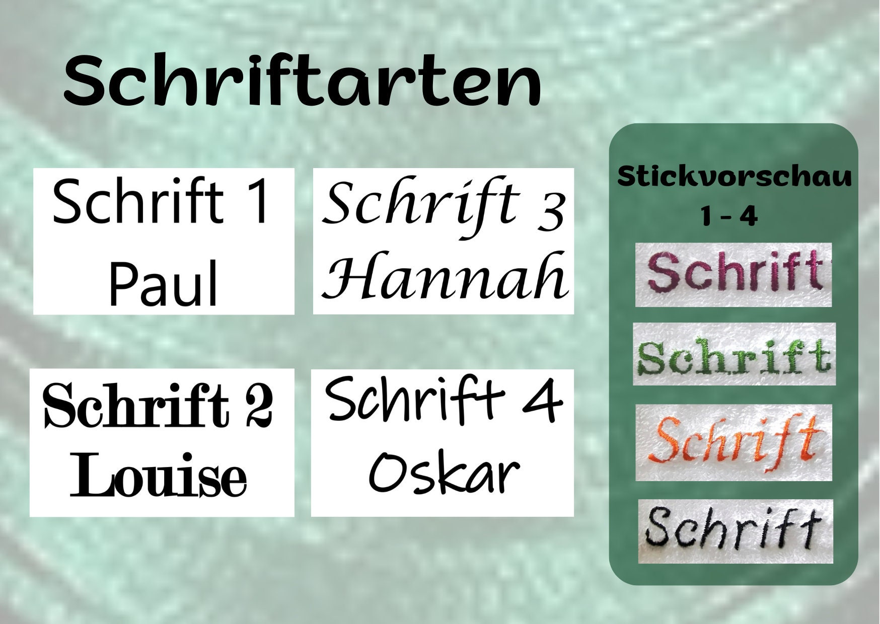 4. Which name/word should be embroidered? (Write in the free field above.)