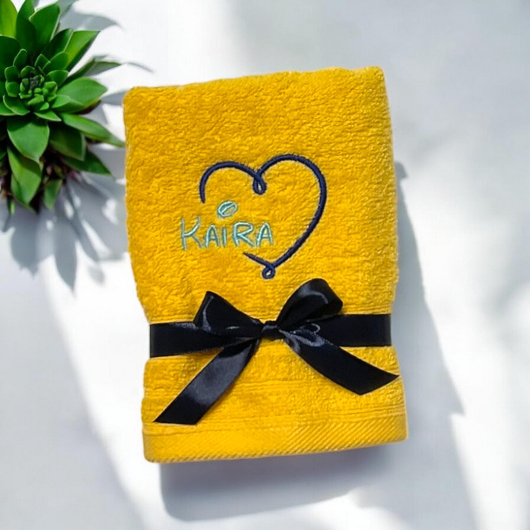 Personalized towel with name & heart motif – in 3 sizes & 7 colors