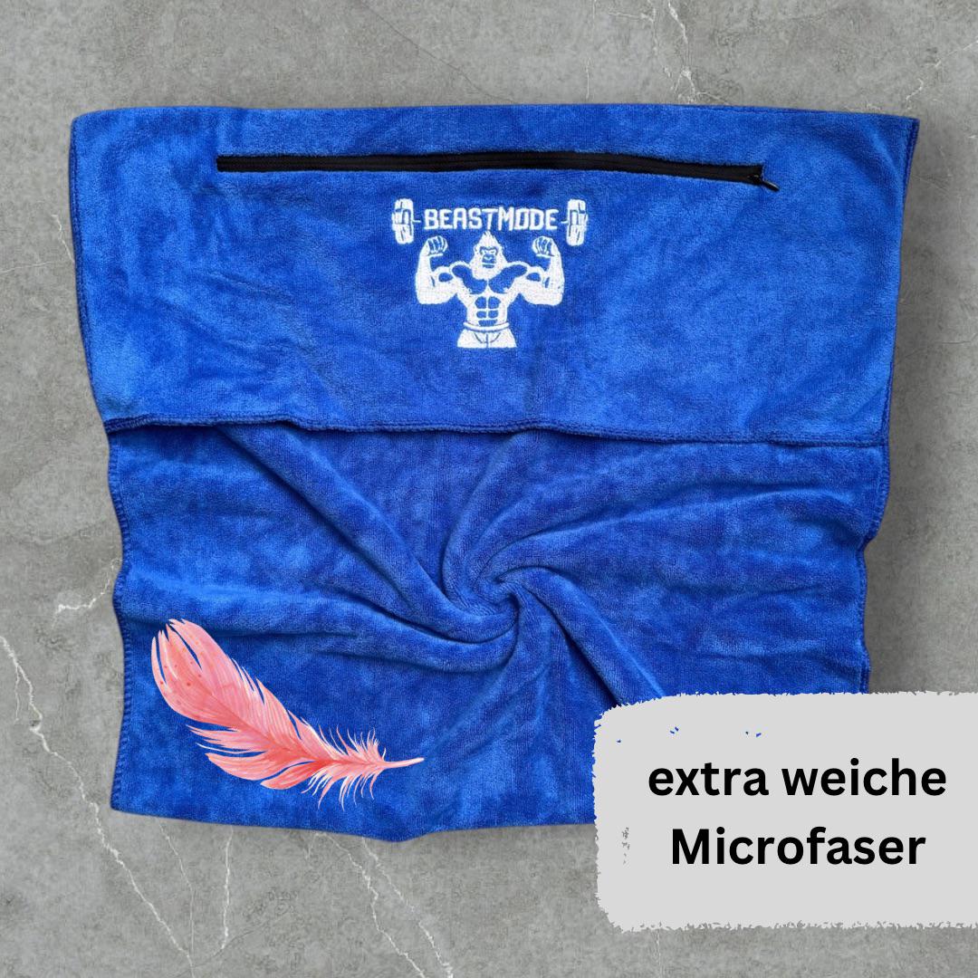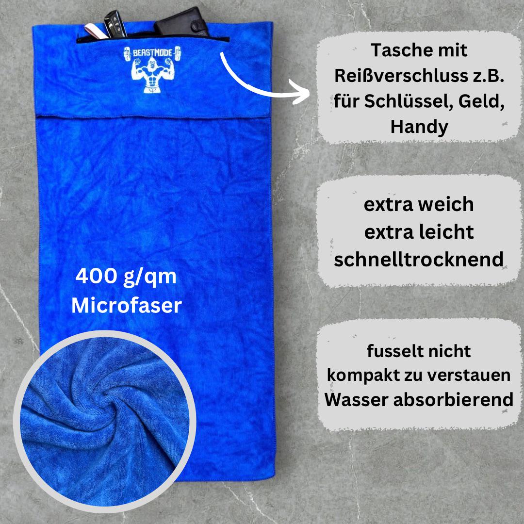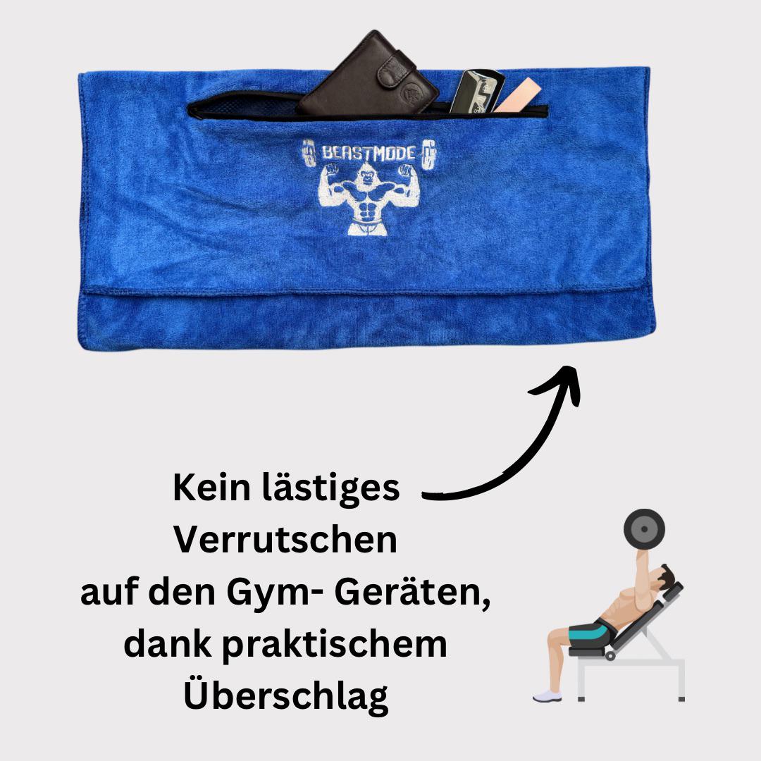 Made from 400gsm microfiber, it's soft, lightweight, quick-drying, and lint-free. The flap ensures a secure hold on fitness equipment, while the practical zippered pocket offers space for your phone, keys, or money.