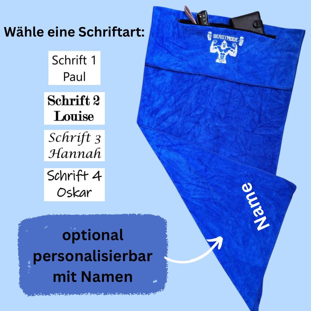 GORILLA Personalized Gym Towel 50 x 100 cm with Pocket & Flap/Towel with Name/Gym Accessory Individual Gift/Sport