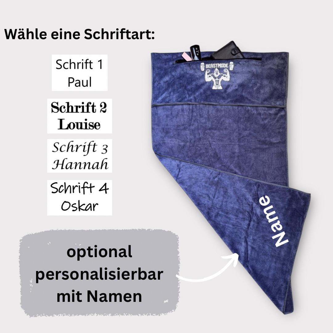 GORILLA Personalized Gym Towel with Name 50 x 100 cm with Pocket & Flap/Gym Accessory Individual Gift/Sport/Athlete