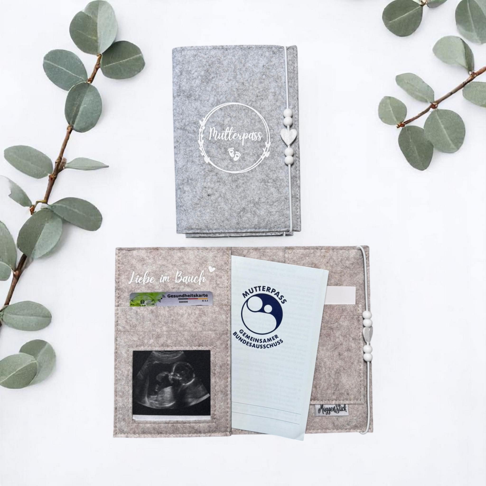 This elegant maternity record book cover made of high-quality felt is the perfect companion throughout pregnancy.