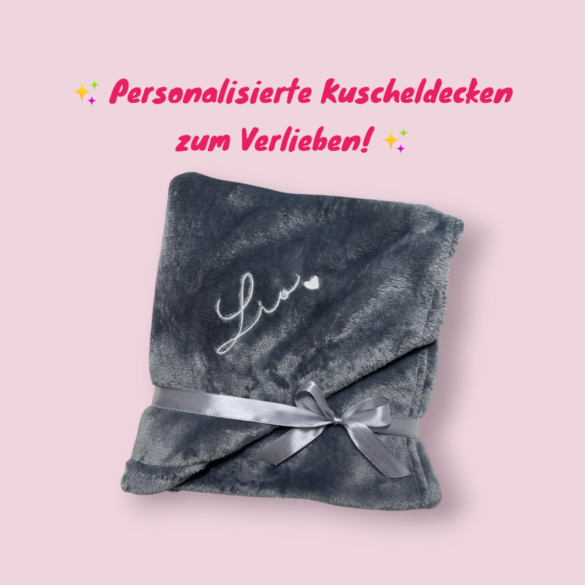 The blanket is individually embroidered with your desired name – you can choose from 16 high-quality yarn colors. The fluffy material provides a cozy feel and makes the blanket the ideal companion for cozy hours ☁️💤.