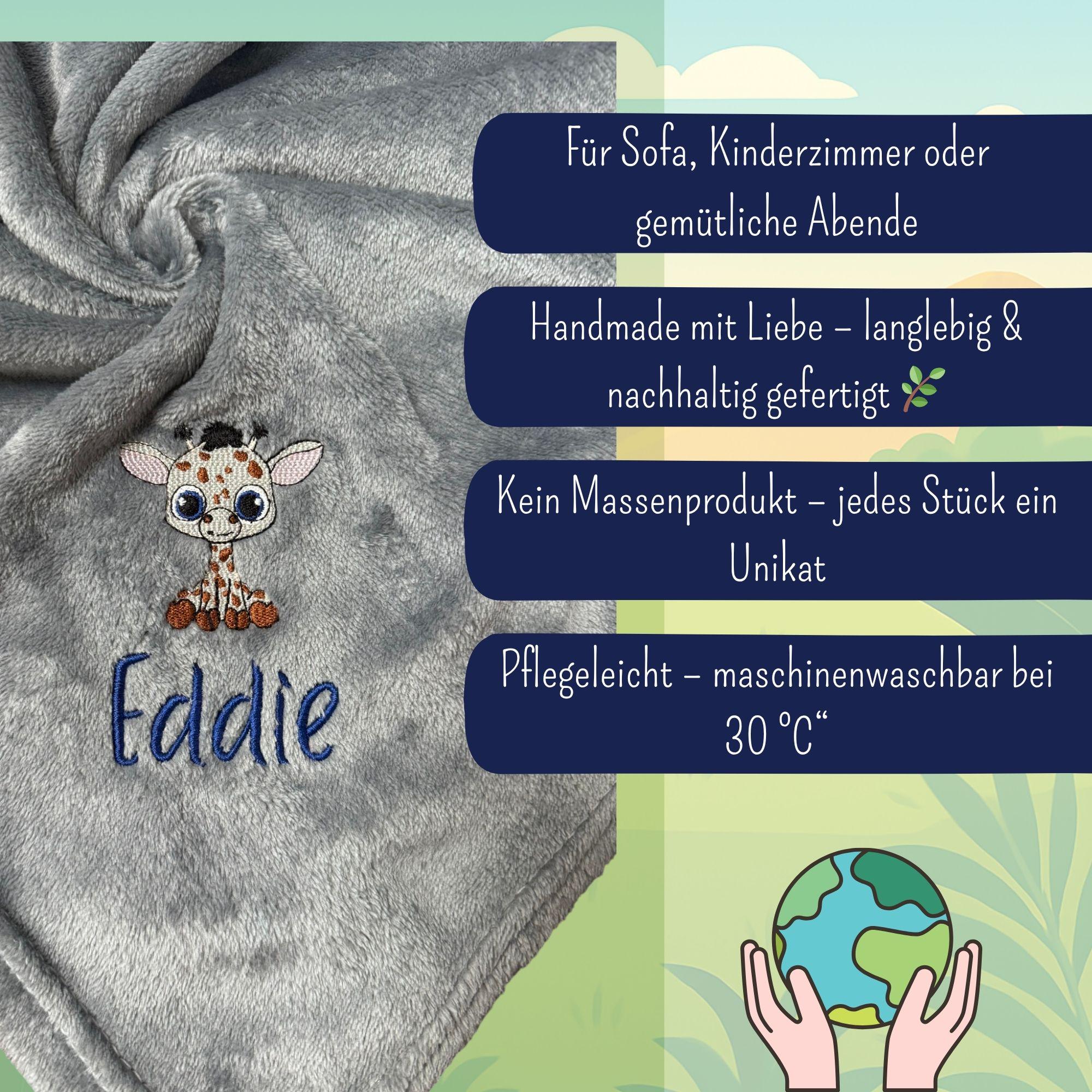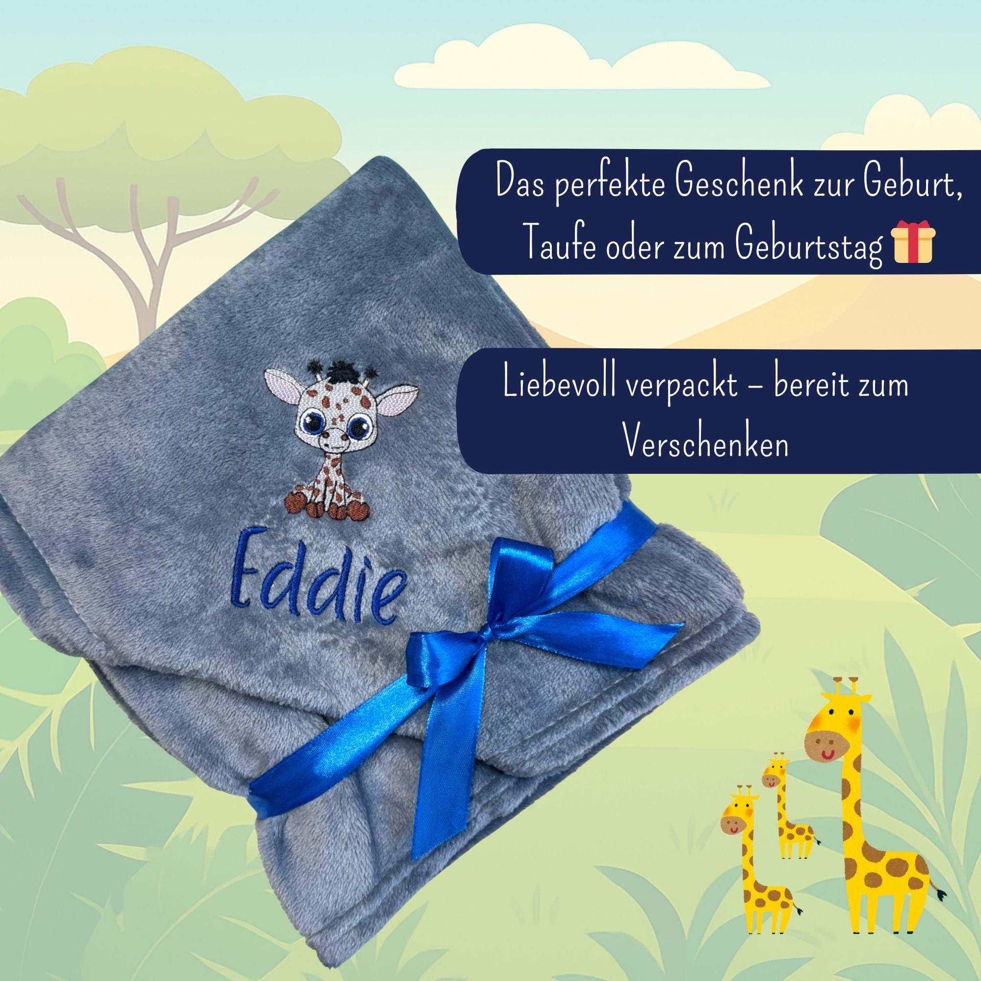 The cute giraffe and your individually embroidered name make each blanket truly unique – perfect as a gift for a birth, christening, birthday, or simply to feel good.