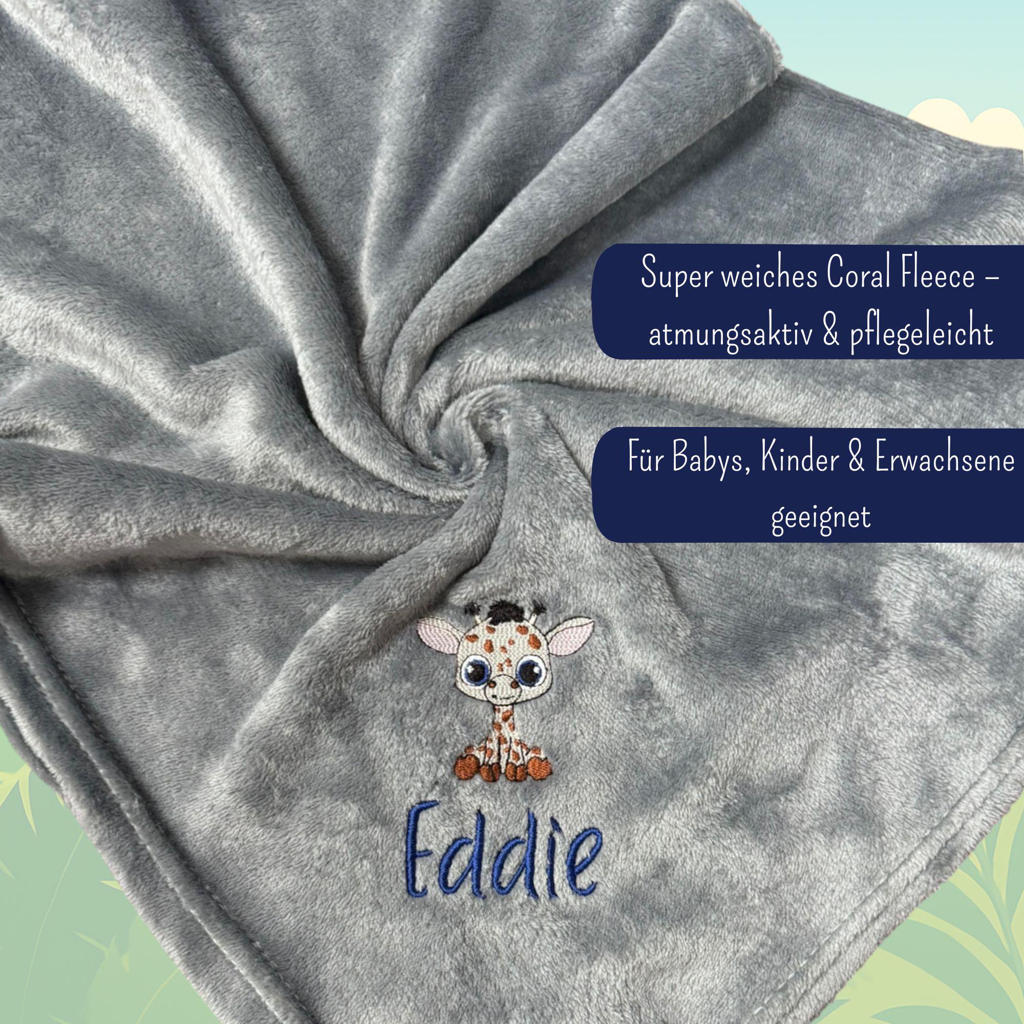 Giraffe blanket embroidered with name – personalized blanket made of coral fleece – 13 colors, 2 sizes – gift idea for birth & for children