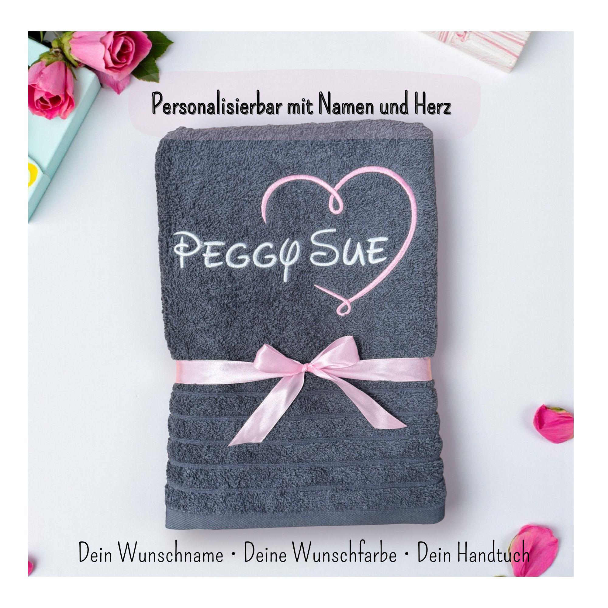 Personalized towel with name & heart – embroidered • Gift idea • 100% cotton • Hand towel, guest towel or bath towel – many colors