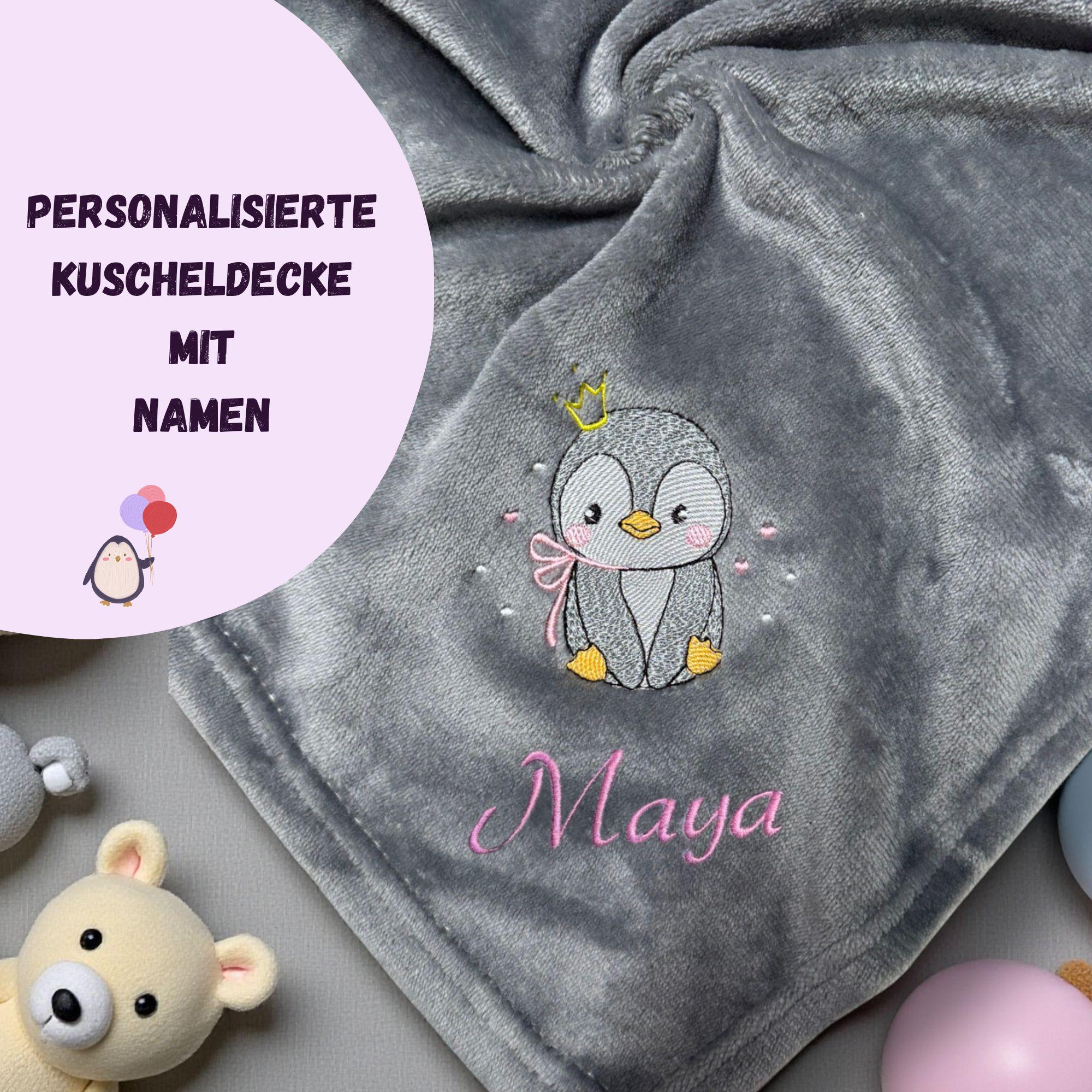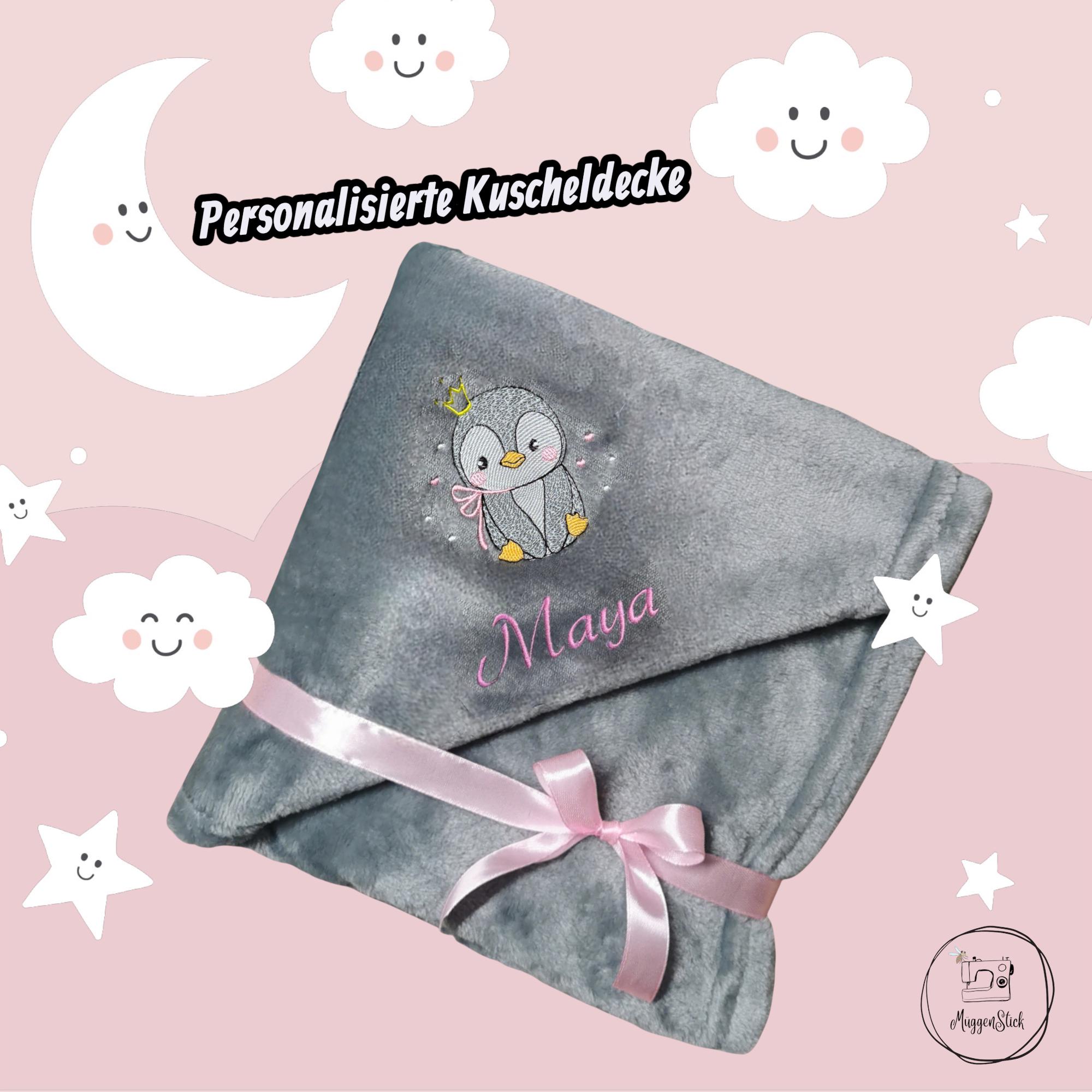✨ Personalized penguin blanket with name – individually embroidered & cuddly soft! ✨