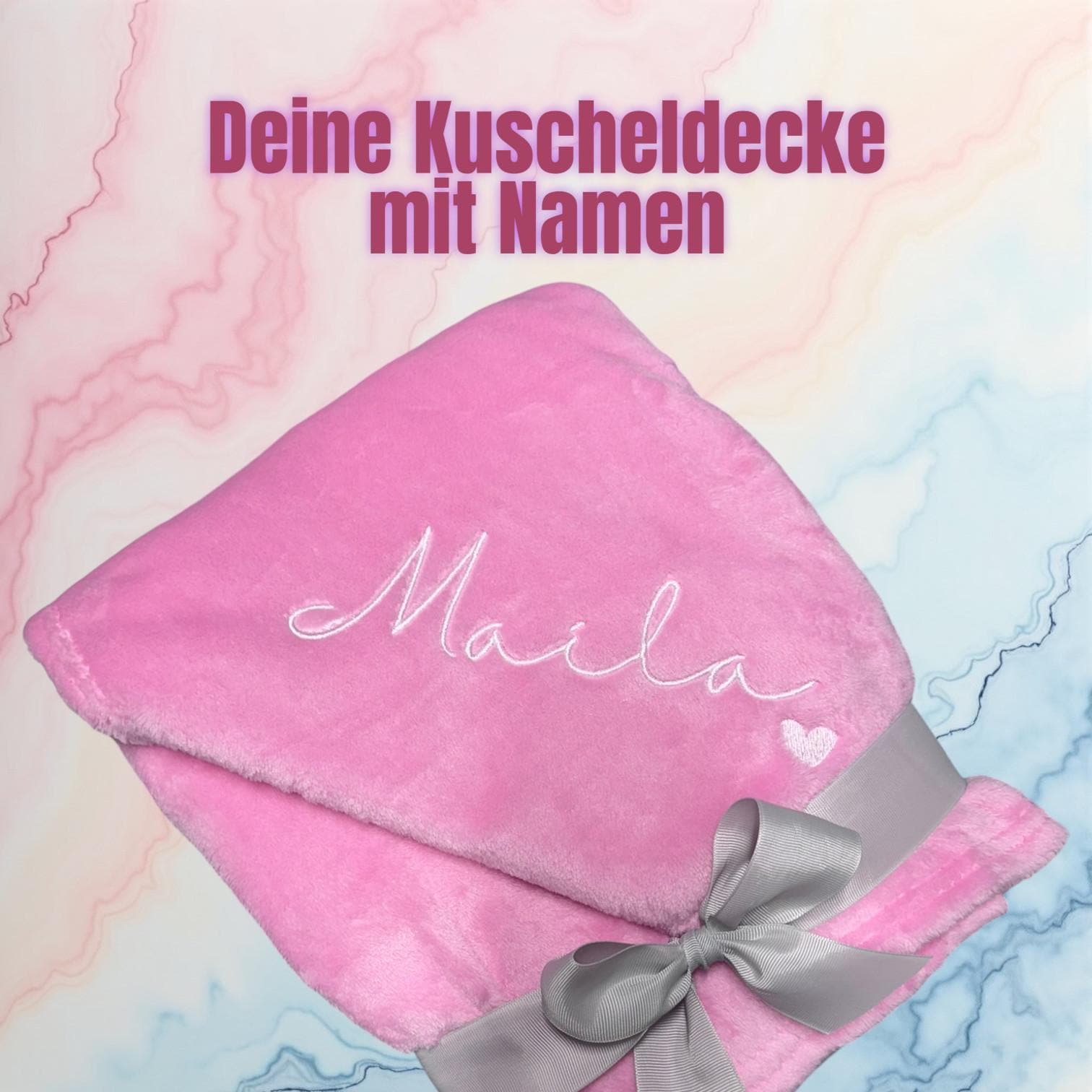 The blanket is individually embroidered with your desired name – you can choose from 16 high-quality yarn colors. The fluffy material provides a cozy feel and makes the blanket the ideal companion for cozy hours ☁️💤.