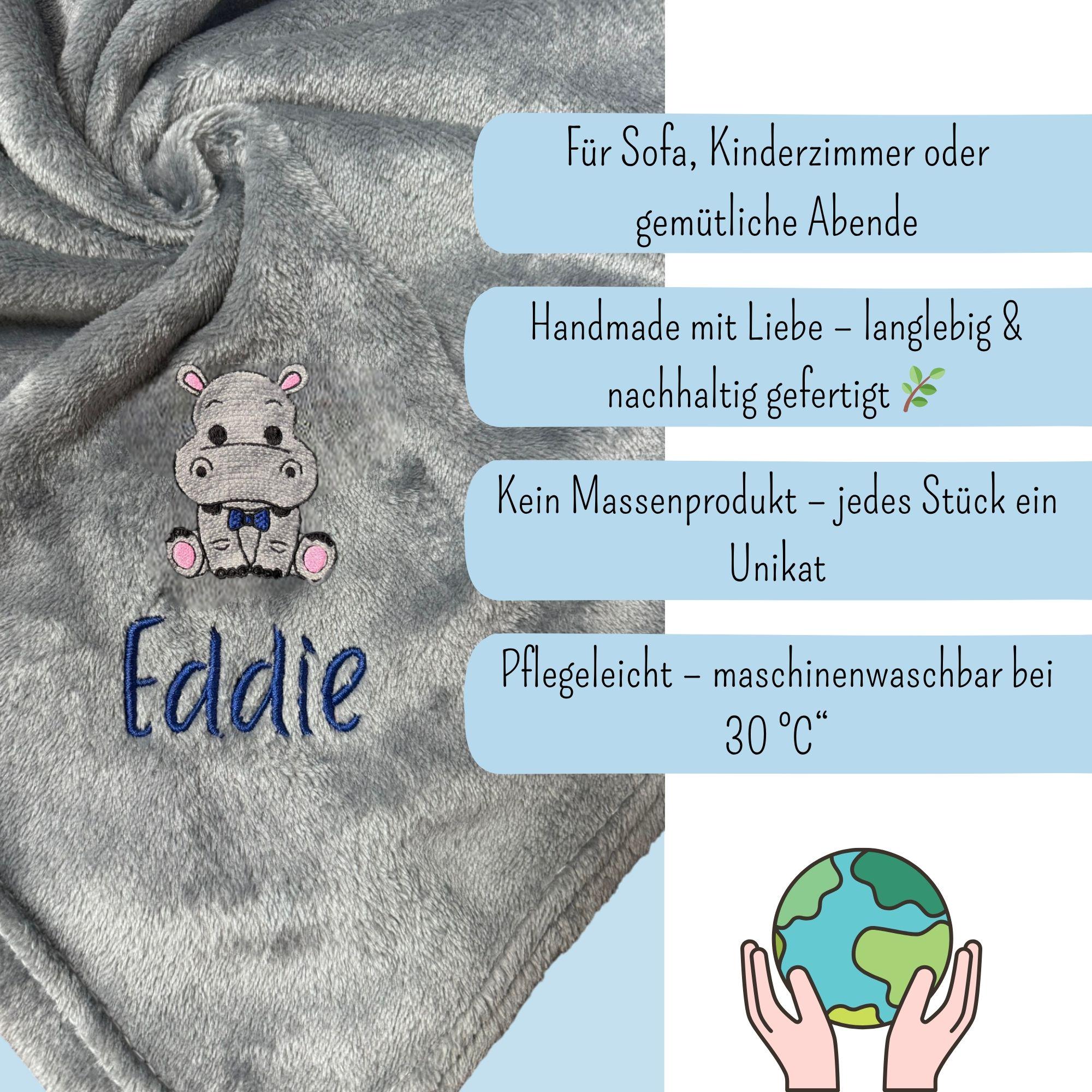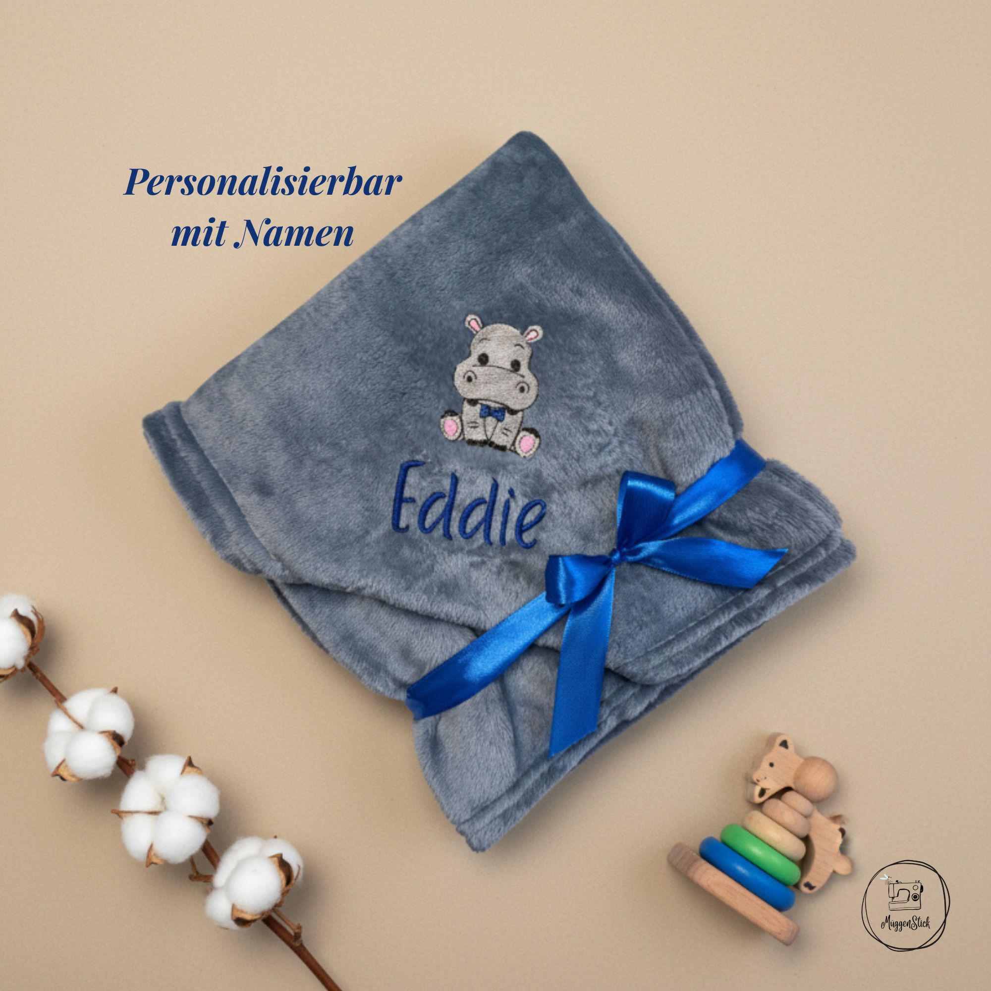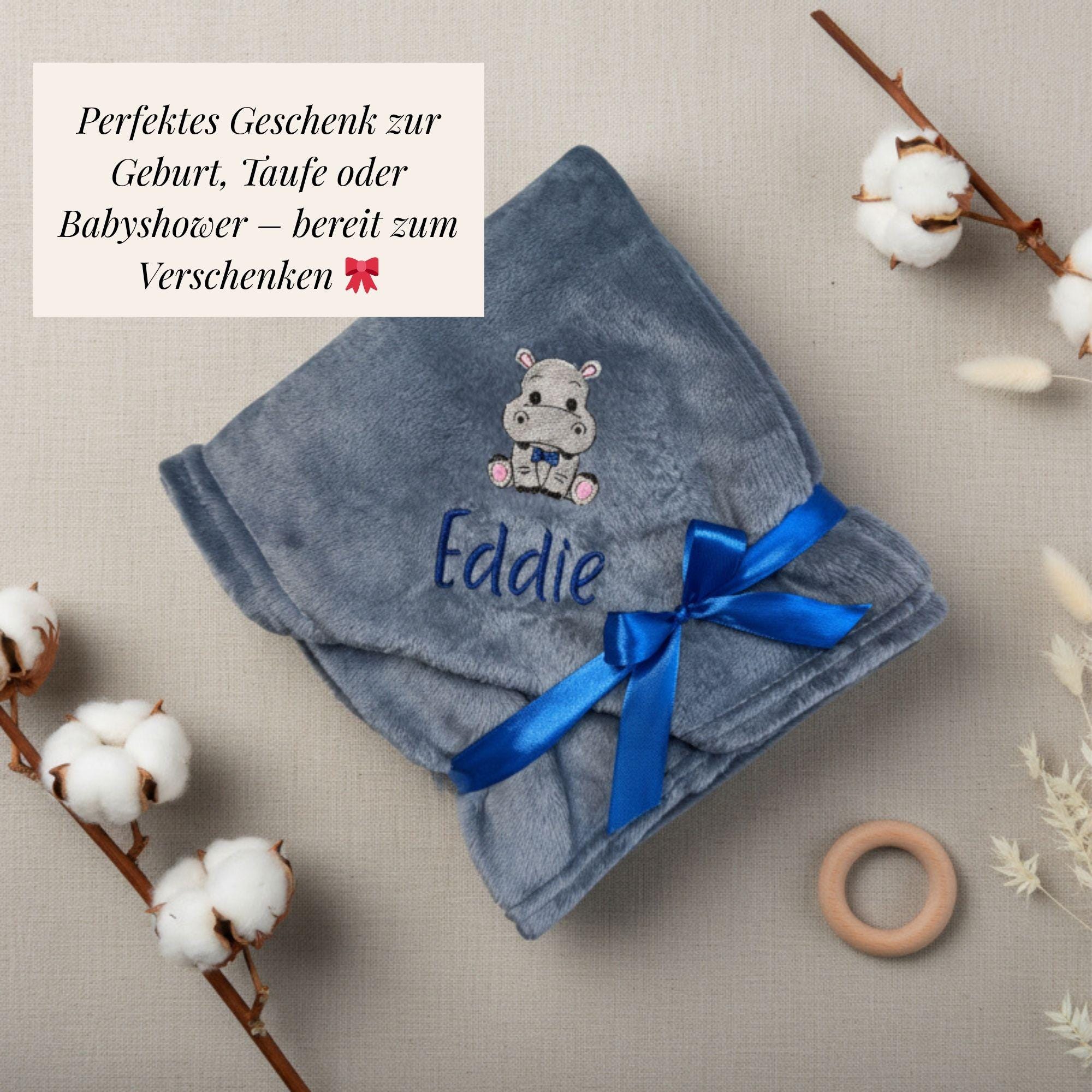 This personalized baby blanket made of high-quality coral fleece is fluffy soft, easy to care for and individually embroidered.