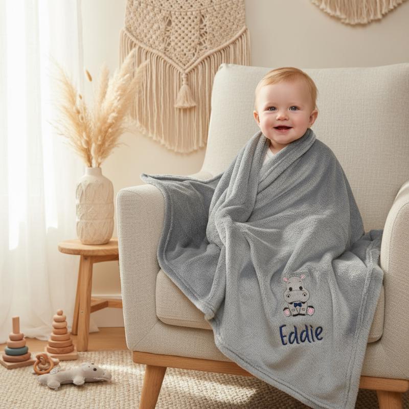 HIPFERD II Personalized Blanket with Name – Embroidered Cuddle Blanket for Babies & Children – Sketch Embroidery – Great Gift for Birth or Christening